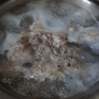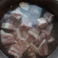冷水下锅,加入适量料酒煮开撇去血沫。