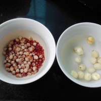 红豆、花豆、莲子提前几小时泡水后洗净