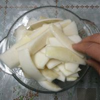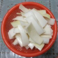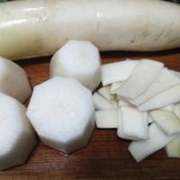 白萝卜洗净,切段后用刀削皮(皮稍厚点)
