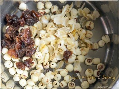 将主食材莲子、百合、龙眼肉放入锅中