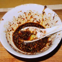 用3汤匙生抽、1汤匙蚝油、1汤匙蜂蜜、适量辣椒、孜然、迷迭香、罗勒、花椒面及黑胡椒碎、芝麻调成的酱料~~抹完了才想起拍照,所以碗边一片狼籍,请忽略。