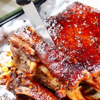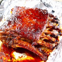 打开锡纸,再分别在两面刷上酱料各烤15分钟(就是先刷一面烤一面,再翻面再刷再烤另一面);