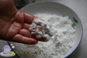 切成方块。将猪肉块里面放入盐、胡椒粉、鸡精、绍酒,搅拌均匀,腌半小时。