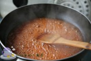 倒入两大匙番茄酱,三大匙白砂糖(如果是罐头,可以减少成2匙或者是一匙半),两勺白醋、两勺绍酒,盐少许,少许清水,调成酱汁。
