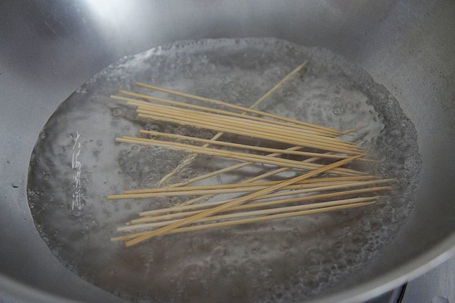 先将竹签放入锅中加入适量的水煮沸腾,进行消毒杀菌