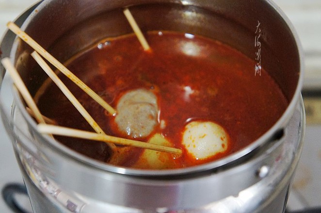 取出所有的串串,装入碗中,倒出汤汁,将蒜压泥,加入耗油,香油,葱拌均匀作为串串香的蘸汁,美味串串香开撸吧