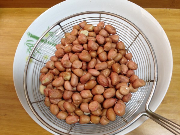 用水洗净,用温水泡2-3分钟,捞出控水(这样可以起到清洗的作用,还是炒制后保持酥脆的要点之一)