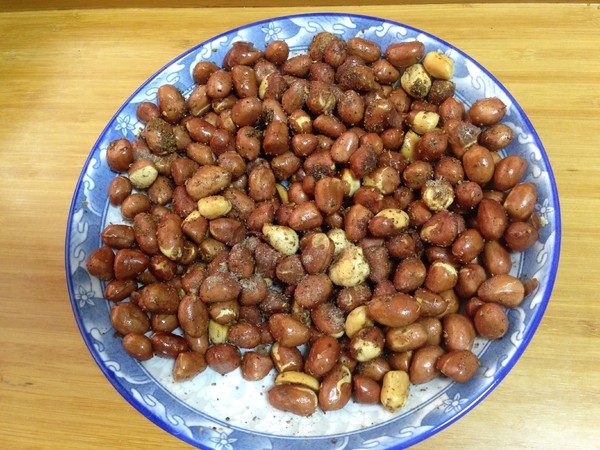 迅速倒入一个平盘摊平,淋入一小勺白酒,拌匀后撒椒盐拌匀冷却后即可食用