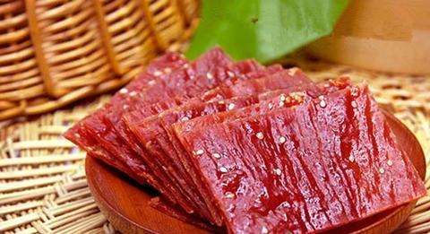 烤盘铺锡纸刷油,把肉放上去,再用保鲜膜盖在上面。然后用擀面杖把肉擀成约0.2厘米的薄片,一定要擀到薄厚均匀!然后取掉上层保鲜膜,刷上糖色和蜂蜜,撒上白芝麻。