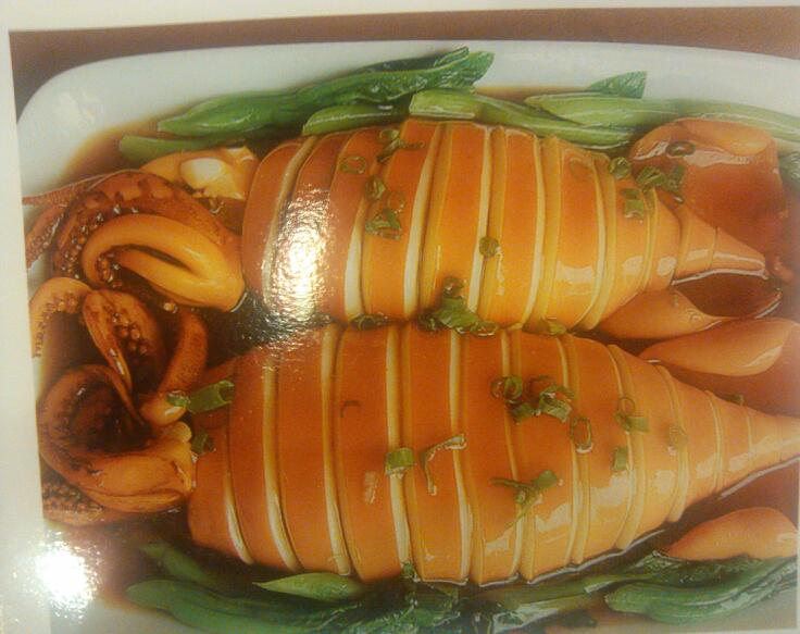 先把鲜鱿鱼洗干净,烧锅水放进去烫熟