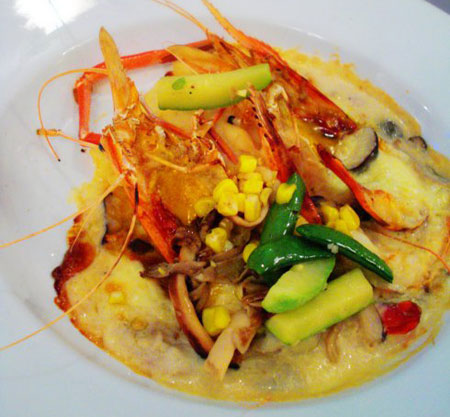 1、食材烹饪: 大厨教路:宜选用肉多的虾,比如明虾、龙虾、老虎虾都可以。 大厨用的是卡夫芝士粉。 伊面能最好的衬出虾的鲜香,如果没有,也可以用其他的面来代替,只不过煮的时间要掌握得当。