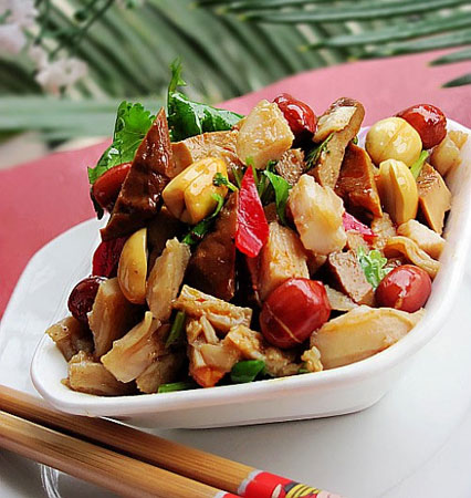 茶干鸡丁以香辣为主,酸甜适度,为佐酒佳品。
