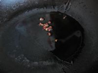 5、锅里倒适量的油,放花椒粒炒,