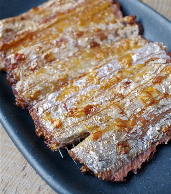 炸蓝里放入稍稍沥干酱汁的带鱼