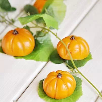 5)用刀背在圆球上按压上一条沟。依次,在上面均分按压四条;小南瓜就做好了,简单吧!