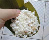 2。在包粽子的时候,糯米不要加太多,不然最后裹的时候会漏米。