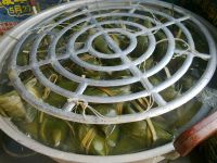 16.水开后在架子上放一个盆,里面装满水,压紧煮粽子。煮四个小时后,关火焖1小时。