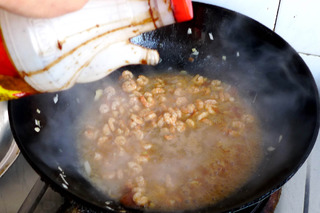 8、另起油锅,爆香另一半量的葱姜碎,将五彩蔬菜丁倒入,快速翻炒。