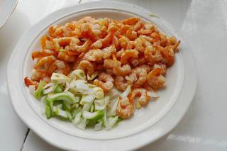 6、翻炒五分钟,待虾仁入味,即可盛出备用。