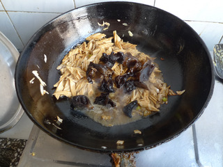 8、待入味,加木耳及少许热水,中火,两分钟。
