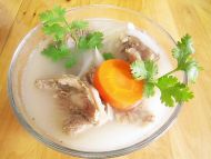 10.将汤盛入碗中,放适量的洋葱和香菜即可。