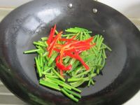 7.加青红辣椒翻炒均匀