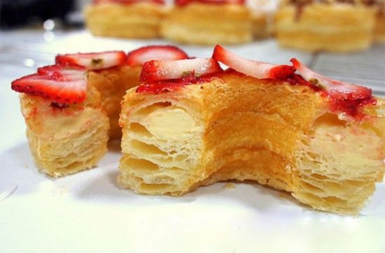 可颂甜甜圈 目前,可颂甜甜圈是全球别出心裁的美食排行榜上绝对的第一名。其他的美食都渴望打破这种用羊角面包制成的甜甜圈所带来的流行。美国纽约的多米尼克 安塞尔烘焙坊拥有该产品的商标权。人们会在这里排长队等待着5美元(人民币约30元)一个的可颂甜甜圈,且每人限购两个。如果您不想排长队又愿意多花些钱,您可以花30美元左右(人民币约183元)在克雷格列表网站上购买一个。全球许多国家和地区都有名字各不相同的类似产品。"