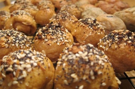Bantam百吉饼球 它是一种夹心的百吉饼球。在美国纽约西区的商店里,您会发现不仅有熏鲑鱼、西红柿和红洋葱奶油芝士填充的百吉饼球,还有熏肉芝士和枫糖填充的鸡蛋切达干酪百吉饼球。还有一种牛奶饼干Bantam,是将香甜的巧克力曲奇奶油芝士填入红糖胡桃百吉饼球中而成。"