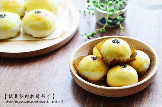 绿豆沙、猪肉松(我选用了海苔肉松)