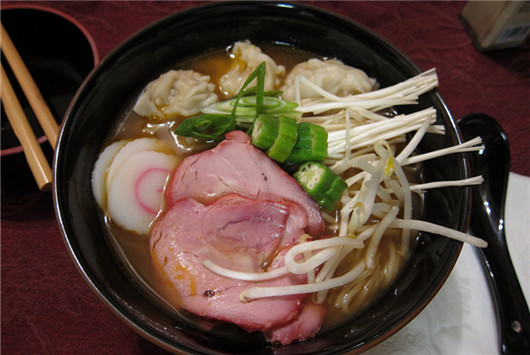秋葵加到拉面中,无比脆爽的口感能够中和叉烧的油腻。