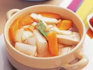 (6)红白萝卜混吃:白萝卜中的维生素c含量极高,但红萝卜中却含有一种叫抗坏血酸的分解酵素,它会破坏白萝卜中的维生素c。一旦红白萝卜配合,白萝卜中的维生素c就会丧失殆尽。不仅如此,在与含维生素c的蔬菜配合烹调时,红萝卜都充当了破坏者的角色。还有胡瓜、南瓜等也含有类似红萝卜的分解酵素。
